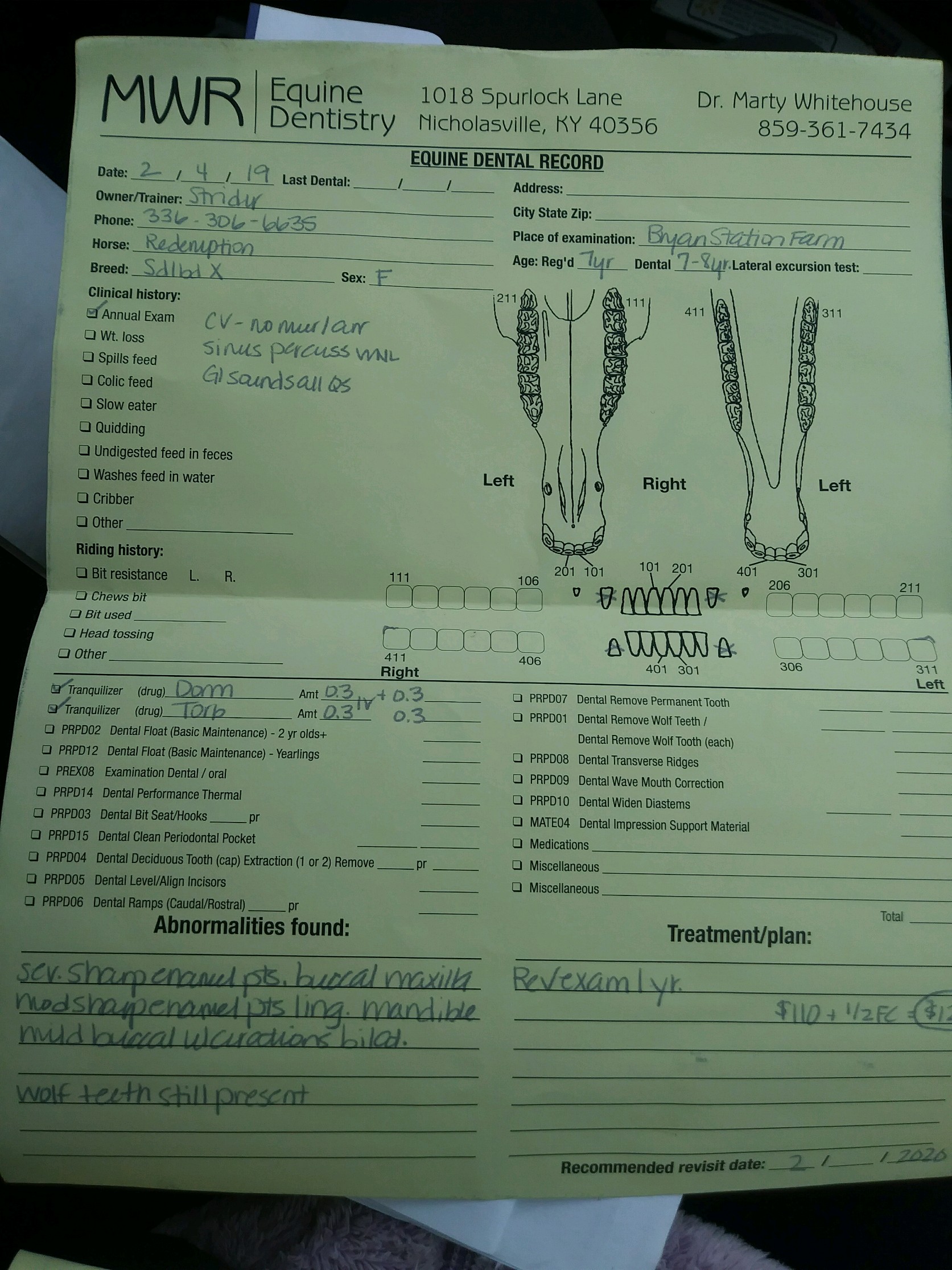 Her teeth were floated, and the dentist agreed on age of 7 years: she has really good teeth but some sharp edges, we are thinking this was her first time having her teeth filed, so this is totally understandable. She’s a lightweight with the tranquilizer, and handled the whole experience well.