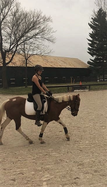 Day 76: Light hack around the farm with Tatum and her mare Raz, then went into the indoor arena and schooled our trotting lateral movements.