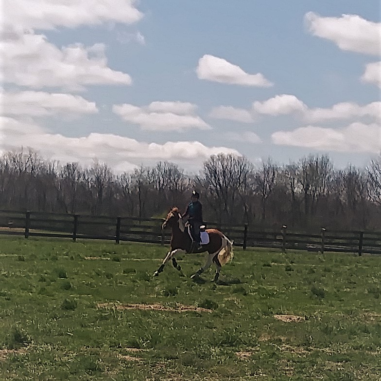 Day 78: I rode Redemption and ponied my recent acquisition, Kova! We then rode in the polo field working on moving out and coming back in the trot and canter, staying between my hands without pulling or drifting. She also gave me some very good leg yields.